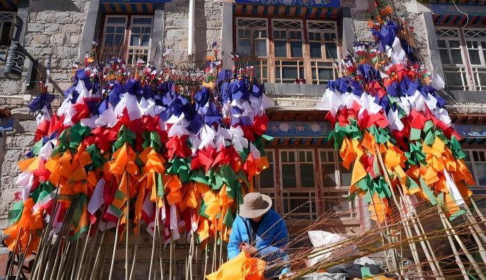 (新春走基層)縫制五彩經(jīng)幡樹(shù) 迎接藏歷新年