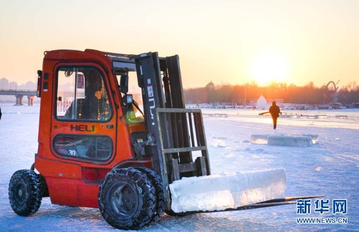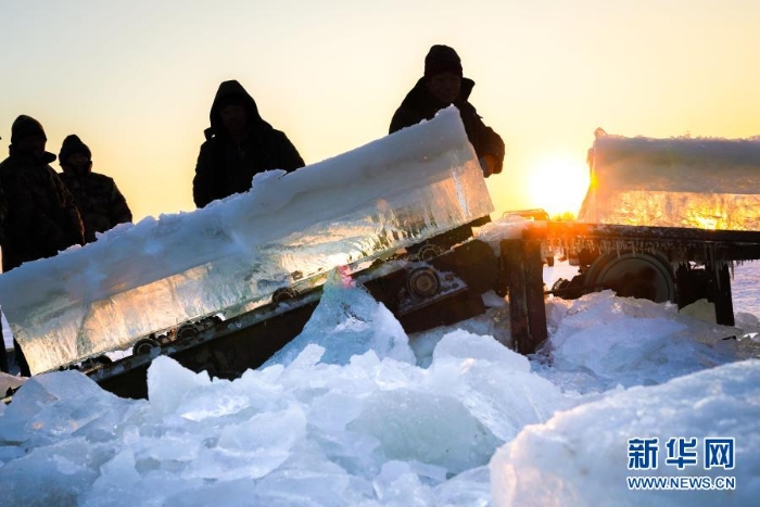 當(dāng)日是大雪節(jié)氣,第二屆哈爾濱采冰節(jié)開(kāi)幕。人們從松花江采冰,將冰塊送往哈爾濱市重要景點(diǎn)和大街小巷。