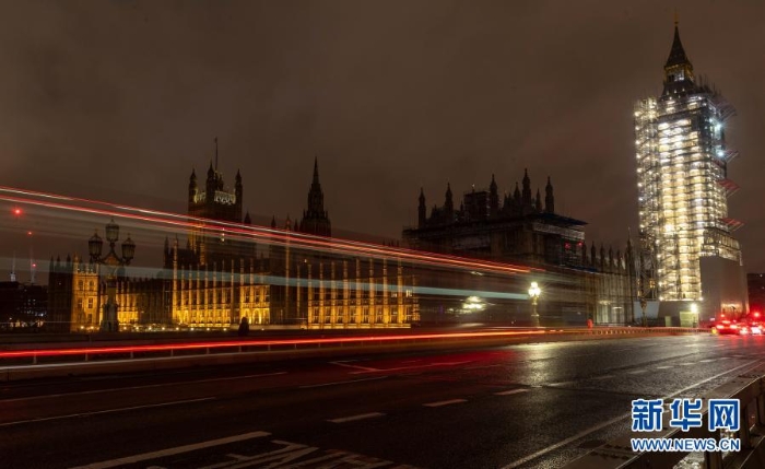 12月23日,車輛從英國(guó)倫敦的議會(huì)大廈前駛過。新華社記者 韓巖 攝