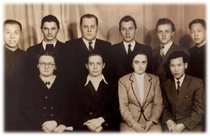 ▲1956年,彭士祿(前排右一)在莫斯科動(dòng)力學(xué)院核動(dòng)力專業(yè)進(jìn)修深造