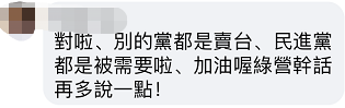 對(duì)于民進(jìn)黨發(fā)言人所稱的"臺(tái)灣對(duì)大陸出口的增加,證明中國(guó)大陸需要臺(tái)灣“相關(guān)言論,遭到島內(nèi)諸多網(wǎng)友批評(píng)。網(wǎng)友稱民進(jìn)黨“永遠(yuǎn)能講出令人瞠目結(jié)舌的話。""什么叫無恥,民進(jìn)黨就是典型!"