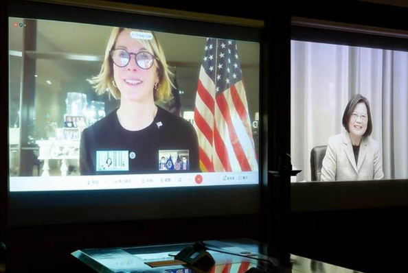 美國駐聯(lián)合國大使克拉夫特與臺當(dāng)局領(lǐng)導(dǎo)人蔡英文視頻對話。圖片來源:臺灣《中時電子報》