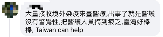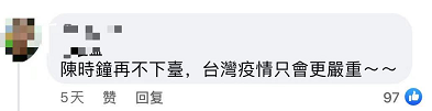 島內(nèi)網(wǎng)友在臉書紛紛認(rèn)為“防疫高官無能才會(huì)累死一線醫(yī)護(hù)人員”、“陳時(shí)中再不下臺,臺灣就完蛋了”……