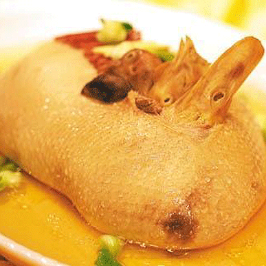 汴京烤鴨:汴京爊鴨,宋時便是市肆名菜。爊者乃是以爐灰煨炙之法熟之,后演變?yōu)橐怨久骰鹂局硕桑阋钥绝喨〈鸂n鴨為治鴨之主流之法,北宋后傳入北方,皮酥肉嫩。