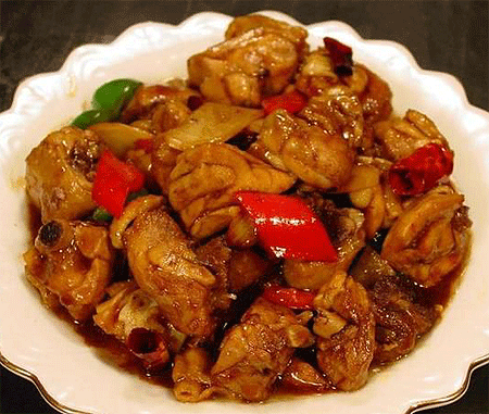 炸八塊:此菜是用秋末之小公雞兩腿四塊,雞膀連脯四塊,以料酒、精鹽、醬油、姜汁腌麻入味后,旺火中油入鍋,頓火漿透,升溫再炸,使其外脆里嫩。食時佐以椒鹽或辣醬油,極其爽口。