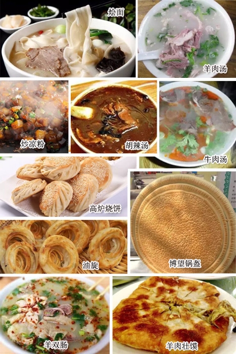 十大風(fēng)味名吃:鄭州燴面、高爐燒餅、羊肉裝饃、油旋、胡辣湯、羊肉湯、牛肉湯、博望鍋盔、羊雙腸、炒涼粉。