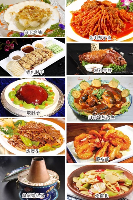 皇家御品鍋:屬于宮廷塞外菜,是宮廷菜與塞外菜的融合??谖断闼瞩r咸、講究造型和器皿是這類菜肴的重要特征。