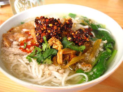 過橋米線已有一百多年的歷史。相傳,清朝時滇南蒙自市城外有一湖心小島,一個秀才到島上讀書,秀才賢慧勤勞的娘子常常弄了他愛吃的米線送去給他當飯,但等出門到了島上時,米線已不熱了。后來一次偶然送雞湯的時候,秀才娘子發(fā)現(xiàn)雞湯上覆蓋著厚厚的那層雞油有如鍋蓋一樣,可以讓湯保持溫度,如果把佐料和米線等吃時再放,還能更加爽口。于是她先把肥雞、筒子骨等熟好清湯,上覆厚厚雞油;米線在家燙好,而不少配料切得薄薄的到島上后用滾油燙熟,之后加入米線,鮮香滑爽。此法一經(jīng)傳開,人們紛紛仿效,因為到島上要過一座橋,也為紀念這位賢妻,后世就把它叫做“過橋米線”。