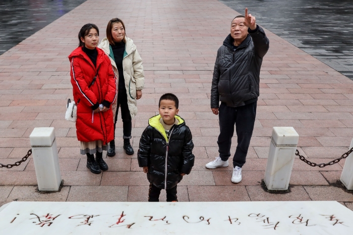 1月25日,楊愛民在遵義紅軍烈士陵園內(nèi)為游客宣講“紅軍烈士紀(jì)念碑”的歷史。新華社記者 歐東衢 攝