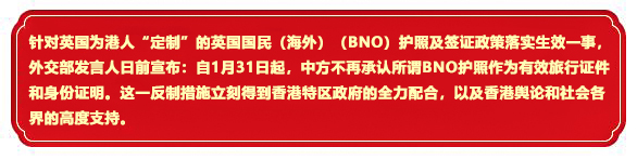 這一反制措施立刻得到香港特區(qū)政府的全力配合,自1月31日起,BNO護(hù)照不能用于在香港出入境,亦不會在香港獲承認(rèn)為任何形式的身份證明。
