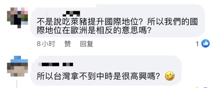 島內(nèi)網(wǎng)友也紛紛響應(yīng):“報(bào)應(yīng),當(dāng)初禁止口罩出口,現(xiàn)在自食其果”、“不是說吃萊豬可以提升國(guó)際地位嗎?”、“或許根本就沒有訂單吧,因?yàn)闆]有國(guó)家要理你”……