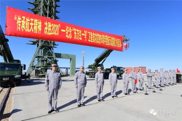 2020年4月24日,第五個“中國航天日”。東方紅衛(wèi)星發(fā)射場柳樹吐綠、生機(jī)盎然,巍巍的發(fā)射塔架歷經(jīng)歲月的洗禮,傲然挺立在茫茫戈壁。發(fā)射場坪上,《東方紅》樂曲再次響徹大地,航天戰(zhàn)旗接力傳遞活動正式開始?! ?/p>