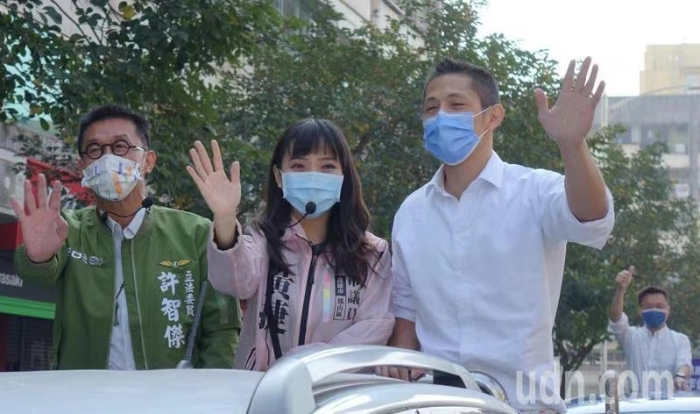 民進(jìn)黨臺北市黨部主委吳怡農(nóng)(右)今天專程到高雄陪同面臨罷免投票的市議員黃捷(中)掃街拜票,“立委”許智杰(左)也陪同掃街。記者楊濡嘉/攝影 圖片來源:臺灣《聯(lián)合報(bào)》