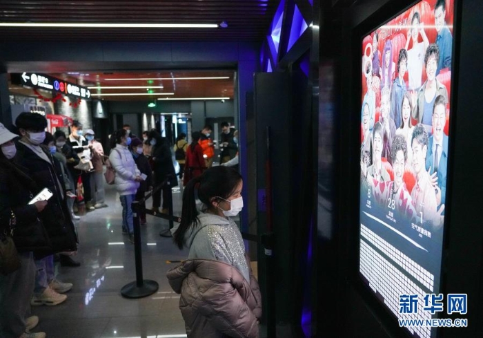 2月17日,觀眾在北京前門的保利國際影城影廳外等待進場。