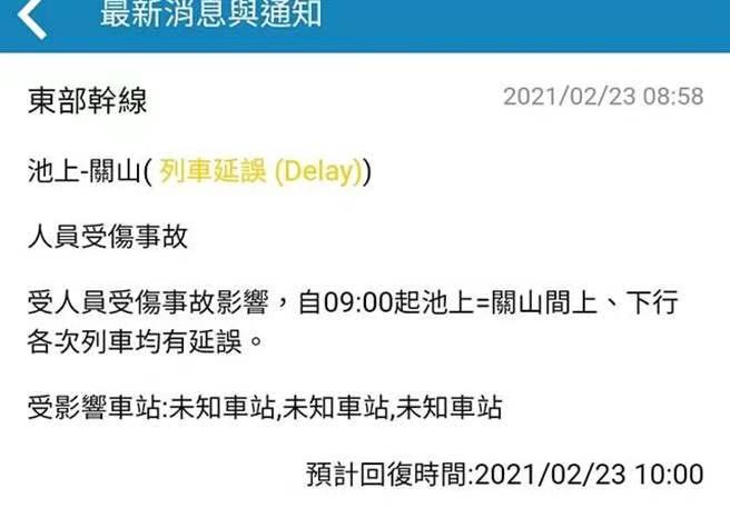 臺(tái)鐵花東線一列維修車今(23)日上午8點(diǎn)多行經(jīng)臺(tái)東縣海端火車站,不明原因撞及到3名施工中的工人,造成2人沒有呼吸心跳另1名受傷,目前現(xiàn)場(chǎng)緊急救援中,全案仍待進(jìn)一步厘清。