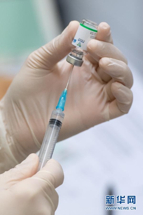 2月22日,澳門黑沙環(huán)衛(wèi)生中心醫(yī)護人員準(zhǔn)備注射新冠疫苗。