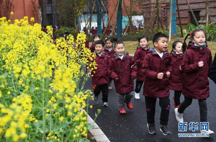 3月1日,重慶兩江新區(qū)青禾童心小學(xué)學(xué)生在校園里晨跑。