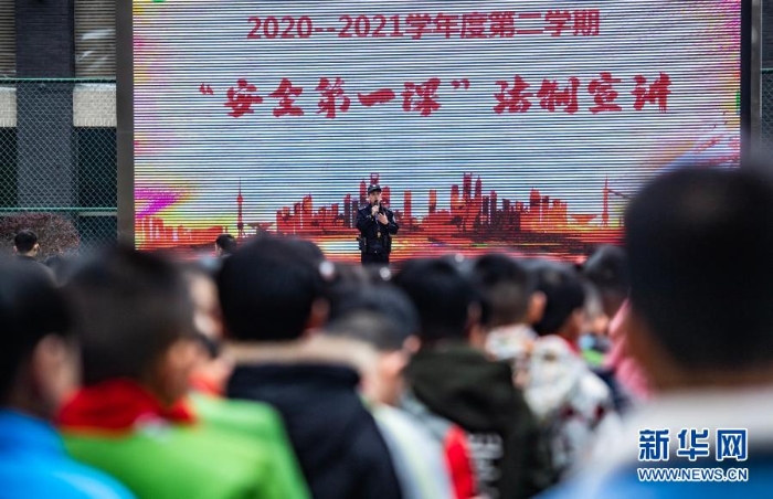 3月1日,在芳草地國際學(xué)校貴陽分校,漁安派出所民警給學(xué)生宣講法律知識(shí)。新華社記者 陶亮 攝