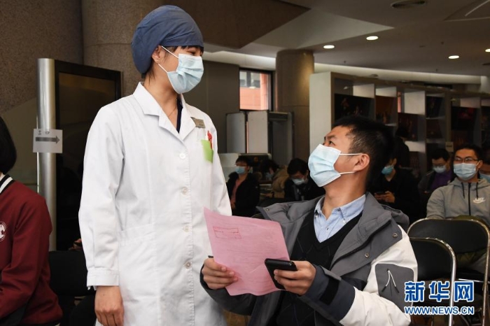3月1日,在清華大學(xué)新冠疫苗臨時(shí)接種點(diǎn),醫(yī)護(hù)人員(左)在留觀區(qū)解答學(xué)生接種新冠疫苗后提出的問(wèn)題。新華社記者 任超 攝