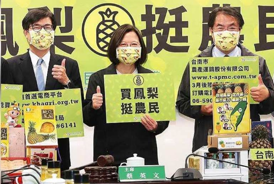 “買菠蘿 挺農民”記者會,左起陳其邁、蔡英文、黃偉哲。(圖/報系數(shù)據(jù)庫)