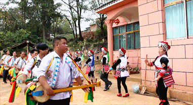 盧利娟探親回家,村民們自發(fā)組織在村口舞起“阿細(xì)跳月”,迎接這名剛從閱兵場上載譽(yù)歸來的阿細(xì)姑娘。說起家鄉(xiāng)變化,盧利娟說,“自己的家鄉(xiāng)在山村,以往交通很不方便,現(xiàn)在水泥路通到每家每戶門口,很多人都建起了新房子,鄉(xiāng)親們的幸福感也增強(qiáng)了。”