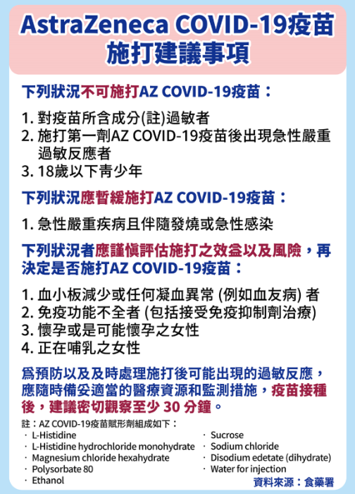 AZ疫苗開打在即,指揮中心列3大類對象不能打。(圖/臺灣《中時電子報》)