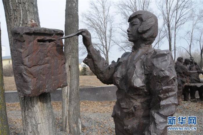 在原子城紀念園里的這座雕塑,生動再現(xiàn)了那個火熱年代中,一個真實而感人的故事。