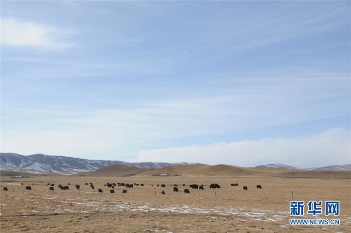 3月5日,牦牛在青海金銀灘草原上吃草。新華社記者 呂雪莉 攝
