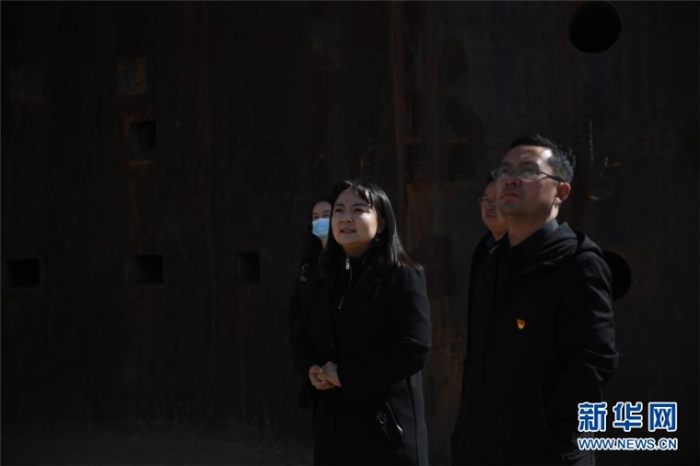 3月10日,孫曉曉(前排左一)為游客講解二分廠歷史。新華社記者 張曼怡 攝