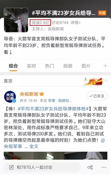 中國(guó)青年網(wǎng)、中國(guó)火箭軍等官方大V報(bào)道后
