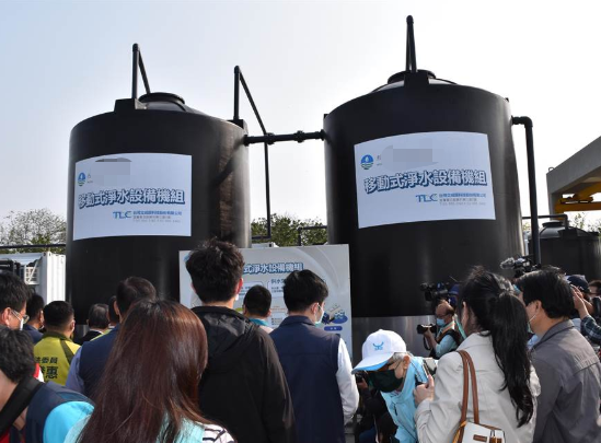 為因應苗栗水庫缺水,臺灣水利部門緊急調(diào)派2部RO級凈水設施進駐竹南水資源處理中心(謝明俊攝)圖片來源:臺灣《中國時報》