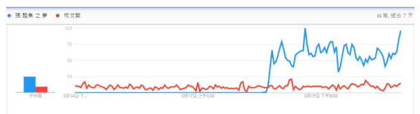 《聲量看政治》粉專21日PO文指出,統(tǒng)計(jì)分析發(fā)現(xiàn),“張鮭魚之夢(mèng)”在3月18日的聲量開始超越臺(tái)北市長(zhǎng)柯文哲,3月19日下午1點(diǎn)來(lái)到最高點(diǎn)。