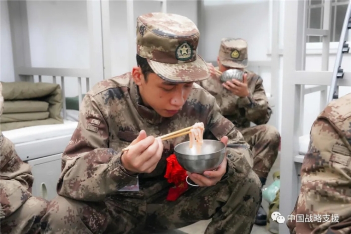 “上車餃子,下車面?!?新兵入營的第一頓飯準(zhǔn)備了“迎新面”, 戰(zhàn)友們來自五湖四海,這頓飯爭取讓新兵們吃出家的溫暖和味道,不僅暖胃,更暖心。