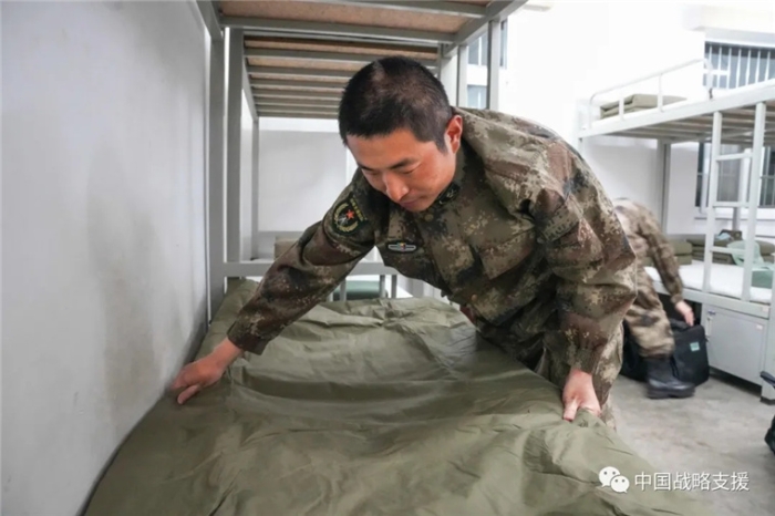 “新戰(zhàn)友們大家好,歡迎你們加入光榮的中國人民解放軍戰(zhàn)略支援部隊。我是你們?nèi)胛橛?xùn)練的班長,接下來3個月我會和你們生活、戰(zhàn)斗在一起,幫助你們完成從普通青年向合格軍人的轉(zhuǎn)變。”新班長和新兵第一次見面。