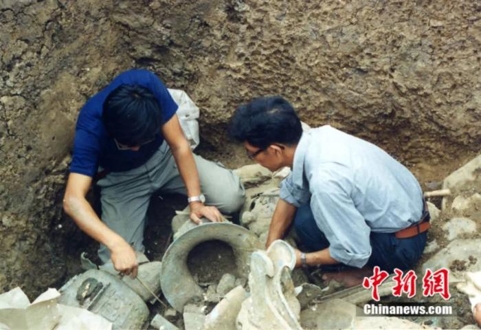 1986年祭祀坑發(fā)掘現(xiàn)場(chǎng)。三星堆博物館供圖(來(lái)源:中新網(wǎng))