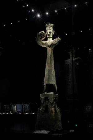 其中,1986年在遺址祭祀?yún)^(qū)發(fā)掘1、2號(hào)“祭祀坑”,出土青銅神像、青銅人像、青銅神樹、金面罩、金杖、大玉璋、象牙等珍貴文物千余件,多數(shù)文物前所未見,其中以青銅器為大宗,尤以80余件青銅雕像為前所未見的重器,這些“驚世大發(fā)現(xiàn)”揭示了一種全新的青銅文化面貌。