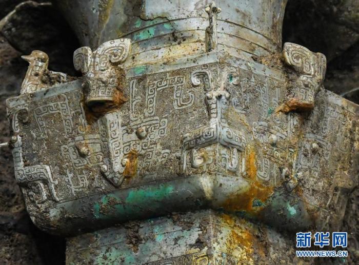 3號(hào)“祭祀坑”出土的大型青銅器局部。(來(lái)源:新華網(wǎng))