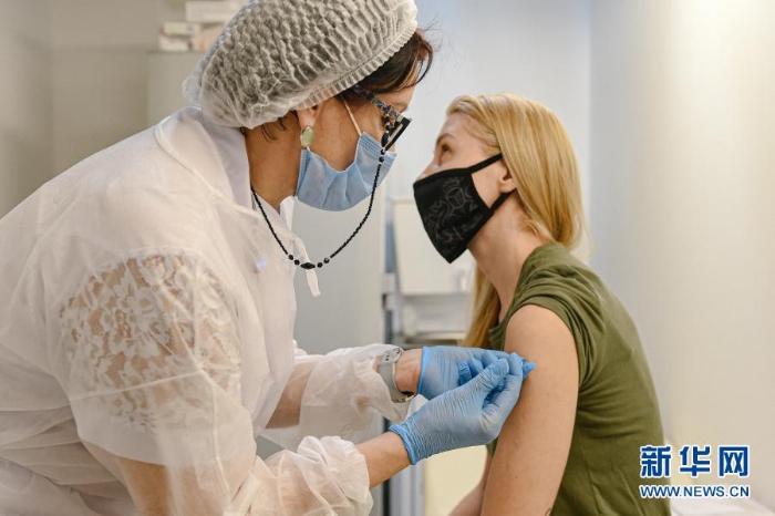 3月23日,在俄羅斯首都莫斯科,一名女士接種新冠疫苗。