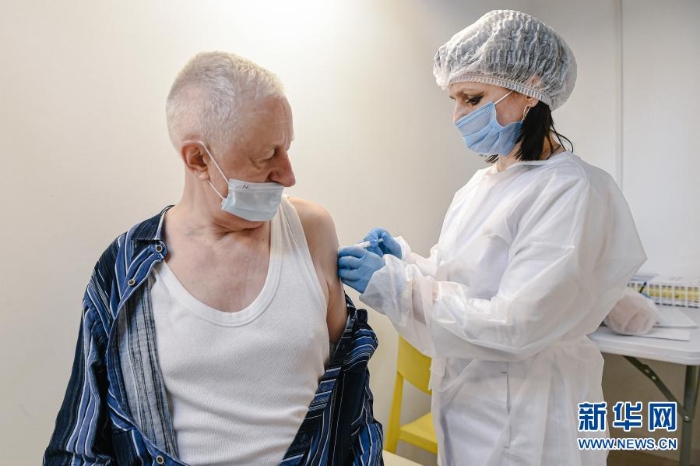 3月23日,在俄羅斯首都莫斯科,一名男子接種新冠疫苗。