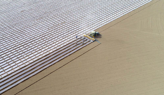 2019年,新疆一臺裝有衛(wèi)星定位導航系統(tǒng)的大型播種機正在播種棉花。(圖/中新社)