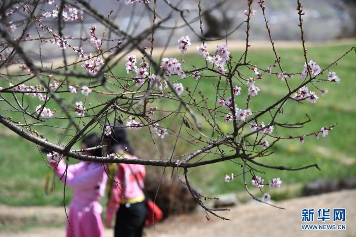 3月28日,游客們來到西藏自治區(qū)林芝市索松村欣賞桃花。新華社記者 孫瑞博 攝