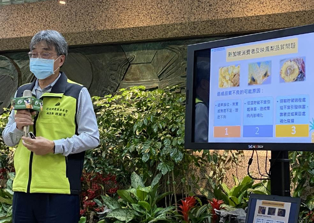 輸新加坡菠蘿質(zhì)量差,三大原因曝光,圖為“農(nóng)委會副主委”陳駿季。(李柏澔攝)