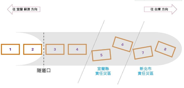 現(xiàn)場一張圖清楚指出,受創(chuàng)最嚴(yán)重的第8、第7節(jié)車廂嚴(yán)重變形;這兩節(jié)車廂也是死亡人數(shù)最多的地方。第6、第5節(jié)車廂同時有多人受困,警消必須分組分從隧道兩端進(jìn)入。