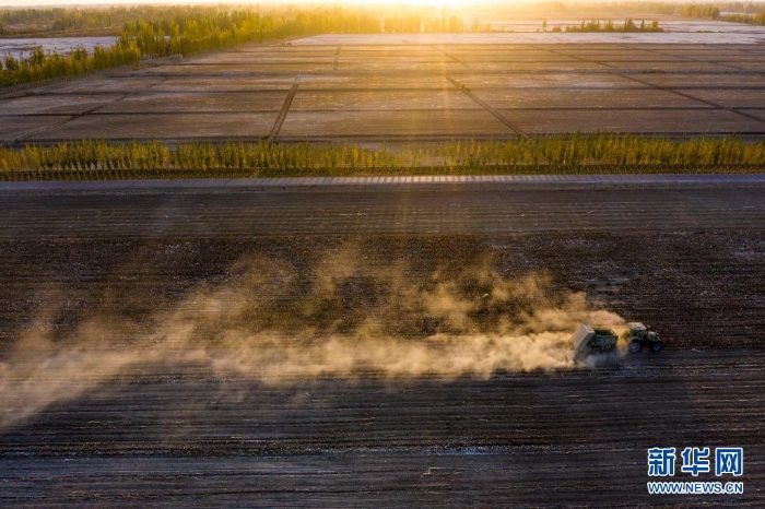 在新疆阿克蘇地區(qū)沙雅縣古勒巴格鎮(zhèn),農(nóng)用機(jī)械在一處采收完的棉田里進(jìn)行殘膜回收、秸稈粉碎還田作業(yè)(2020年10月23日攝,無(wú)人機(jī)照片)。阿克蘇地區(qū)沙雅縣地處塔里木盆地西北緣,是產(chǎn)棉大縣。近年來(lái),沙雅縣先后吸引棉紡、農(nóng)機(jī)制造、節(jié)水設(shè)備制造等多家企業(yè)落戶。