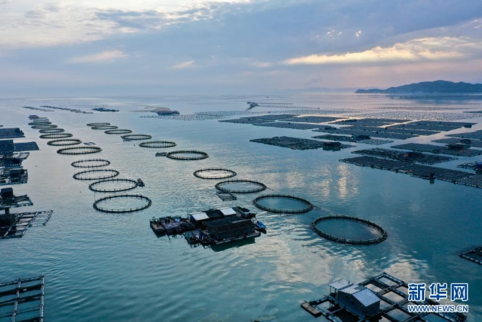 福建省東山縣陳城鎮(zhèn)海上水產(chǎn)養(yǎng)殖區(qū)(2020年3月26日攝,無(wú)人機(jī)照片)。東山縣是全國(guó)水產(chǎn)品加工出口大縣,2019年全縣水產(chǎn)品總產(chǎn)量44萬(wàn)噸,其中海水養(yǎng)殖產(chǎn)量27.6萬(wàn)噸。