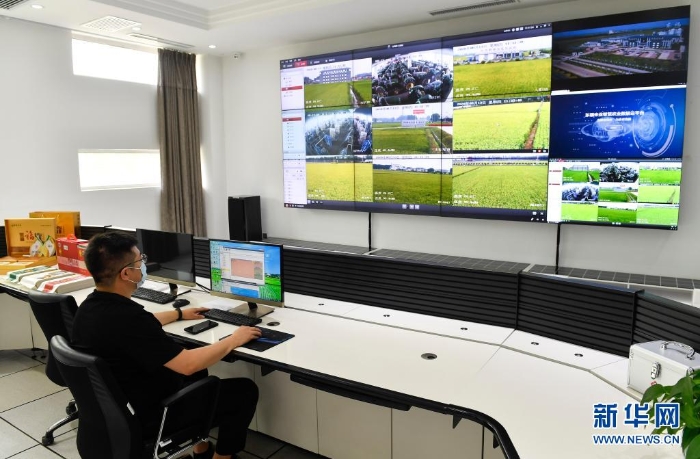 在吉林市孤店子鎮(zhèn)東福米業(yè)現(xiàn)代農(nóng)業(yè)信息化監(jiān)視指控中心,工作人員通過(guò)監(jiān)控系統(tǒng)查看稻田情況(2020年8月13日攝)。近年來(lái),吉林省吉林市大力發(fā)展“智慧農(nóng)業(yè)”,以新技術(shù)、新模式、新業(yè)態(tài)為抓手,在希望的田野上播撒“科技種子”,讓農(nóng)民從“會(huì)”種地到“慧”種地,保障糧食安全,助力鄉(xiāng)村振興。
