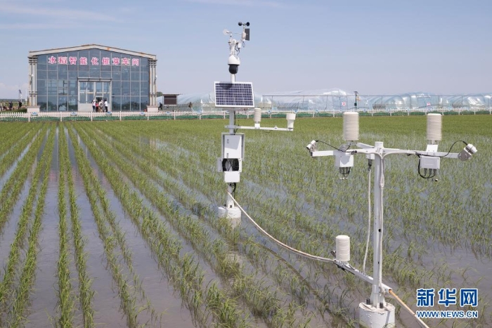 黑龍江省富錦市東北水田現(xiàn)代農(nóng)機(jī)專(zhuān)業(yè)合作社稻田里的專(zhuān)業(yè)設(shè)備(2020年6月12日攝)。