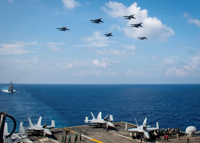 【環(huán)球網(wǎng)報道記者 徐璐明】美國海軍“羅斯?!碧柡侥笐?zhàn)斗群近日被曝進入南海。最新消息顯示,美軍航母戰(zhàn)斗群在南海與馬來西亞空軍開展了聯(lián)合演習,還上演了俄制重型戰(zhàn)斗機飛越美軍航母的罕見一幕。