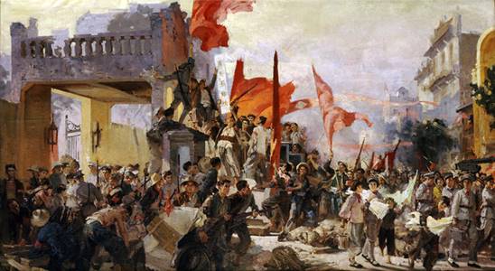 6時,起義軍已占領了珠江北岸大部分地區(qū)。省會公安局屋頂上豎起了繡著錘頭鐮刀的紅旗,大門口懸掛著“廣州蘇維埃政府”的橫額。這是東方民族解放運動中建立的第一個城市蘇維埃政權,被譽為“東方的巴黎公社”。