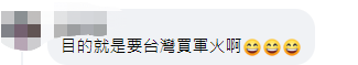 島內(nèi)網(wǎng)友紛紛留言回復(fù),“原因'萊'了”、“就是來(lái)騙錢(qián)”、“目的就是要臺(tái)灣買(mǎi)軍火啊”……